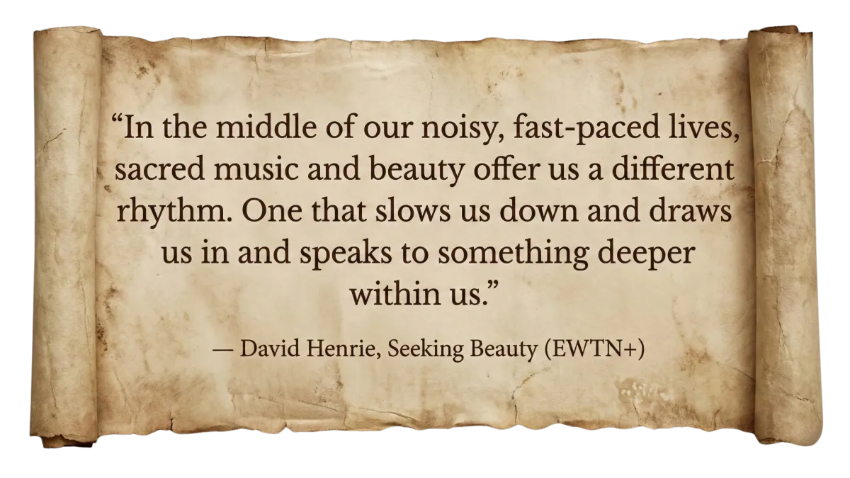 "I’m reminded of a moment in the Confessions of St Augustine when he walked past a church in Milan and heard singing from within. That simple sound pierced the chaos of his life and gave him a new rhythm. One that began to reorient his heart. I think that’s something we all need today. In the middle of our noisy, fast-paced lives, sacred music and beauty offer us a different rhythm. One that slows us down and draws us in and speaks to something deeper within us."